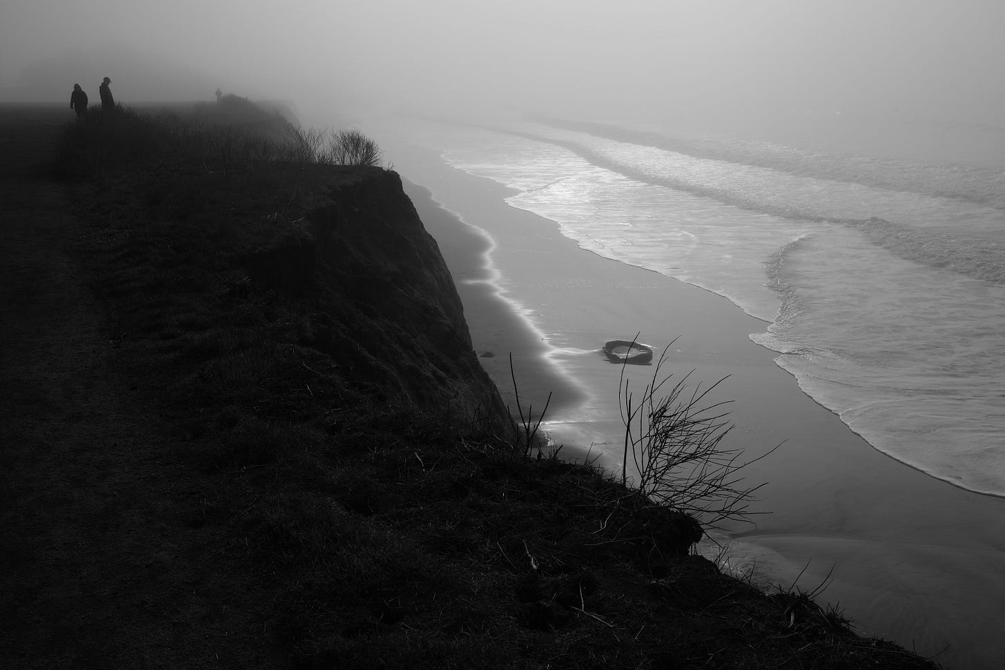 We stand in the fog and look down at the mysterious circular hole. The waves washing over it and receding remind me of the repeating, ponderous machines in the radiation chamber.